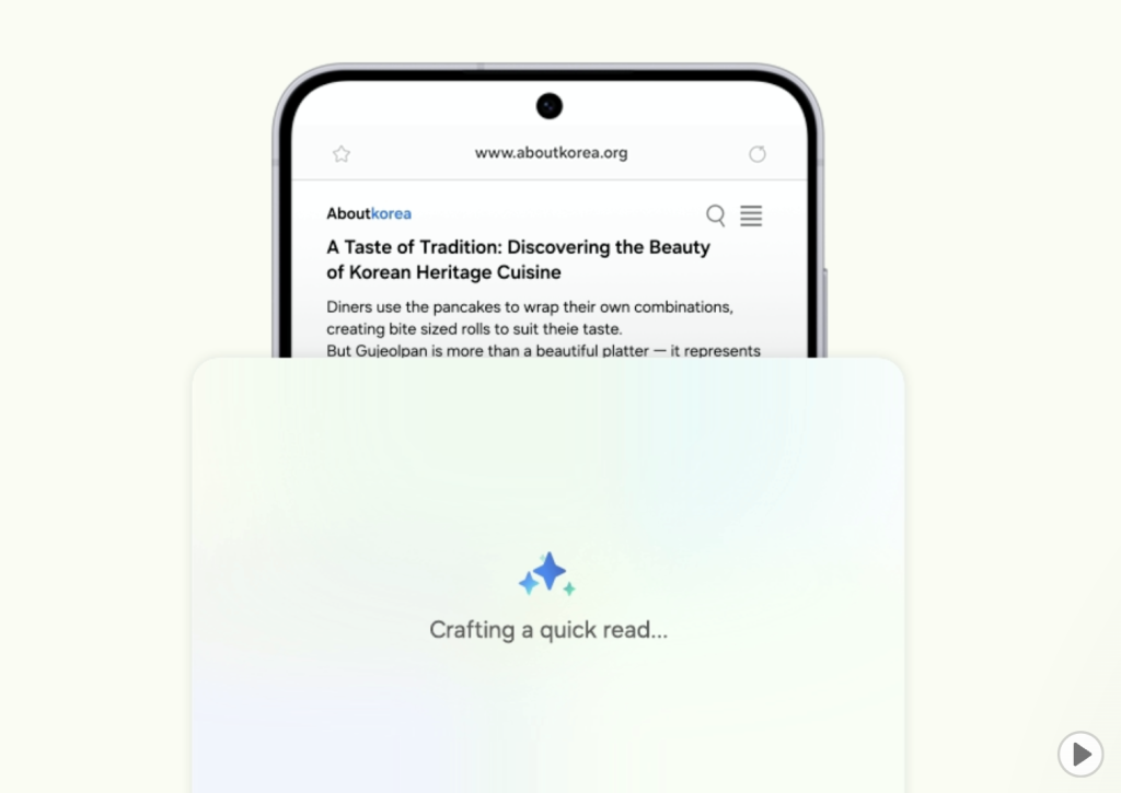Selain itu, Samsung turut menawarkan fungsi Browsing Assist yang menjadikan pengalaman membaca di internet lebih praktikal. Artikel panjang boleh diringkaskan secara automatik, manakala maklumat penting dipaparkan dengan jelas supaya anda tidak perlu menatal tanpa henti.