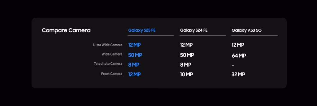 Antara tarikan terbesar Samsung Galaxy S25 FE ialah pada bahagian kameranya. Dilengkapi kamera hadapan 12MP bersama ProVisual Engine berasaskan AI, rakaman swafoto kini kelihatan lebih jelas, terang dan semula jadi, walaupun dalam pencahayaan yang rendah.
