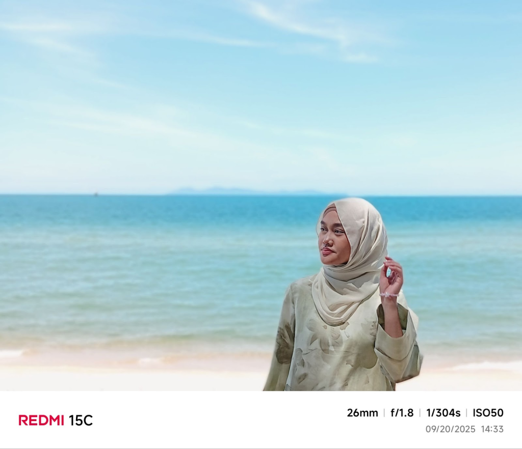 Dari segi fotografi pula, Redmi 15C memberikan hasil yang memuaskan. Saya sering menggunakan mod Ultra HD untuk merakam suasana gambar, manakala mod Potret pula menjadi kegemaran saya ketika mengambil sesuatu objek dan gambar individu. Sebagai seseorang yang gemar berswafoto, fungsi Selfie Beauty Mode juga sangat membantu kerana ia memberikan sentuhan lembut pada gambar tanpa membuat wajah kelihatan terlalu berlebihan.