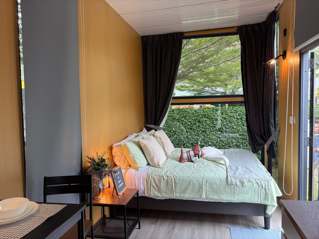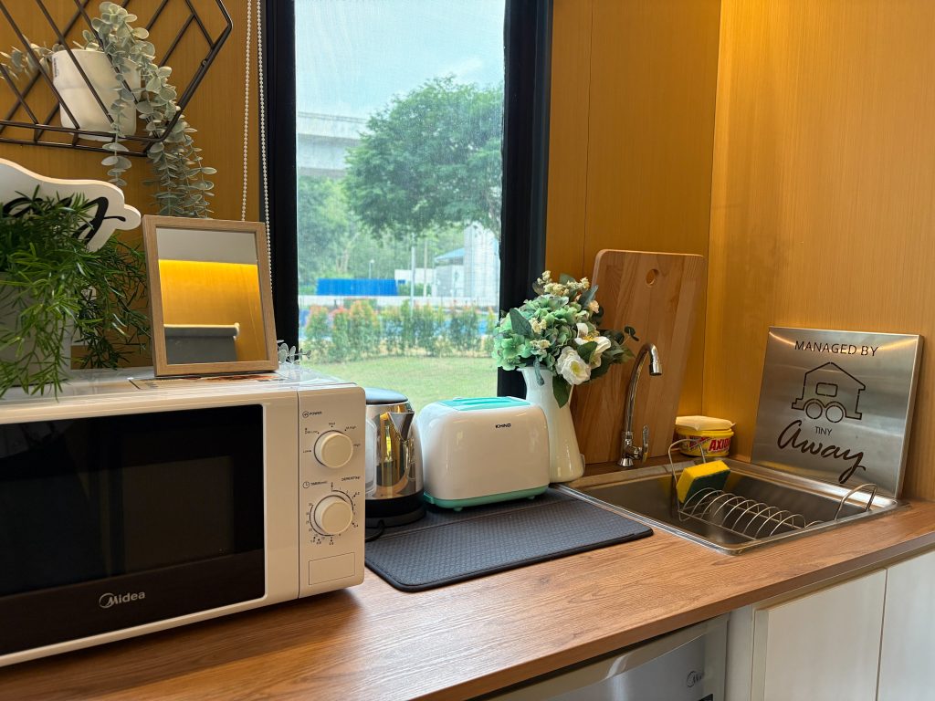 Tidak seperti rumah biasa, rumah kecil mesra alam ini hadir dengan ruang yang terhad – tetapi masih lagi muat untuk meletakkan dan menyusun kemudahan-kemudahan asas di dalamnya seperti katil, ruang tamu mini, pantri kecil yang dilengkapi kemudahan asas, dan tingkap luas yang membenarkan cahaya semula jadi memenuhi ruang.