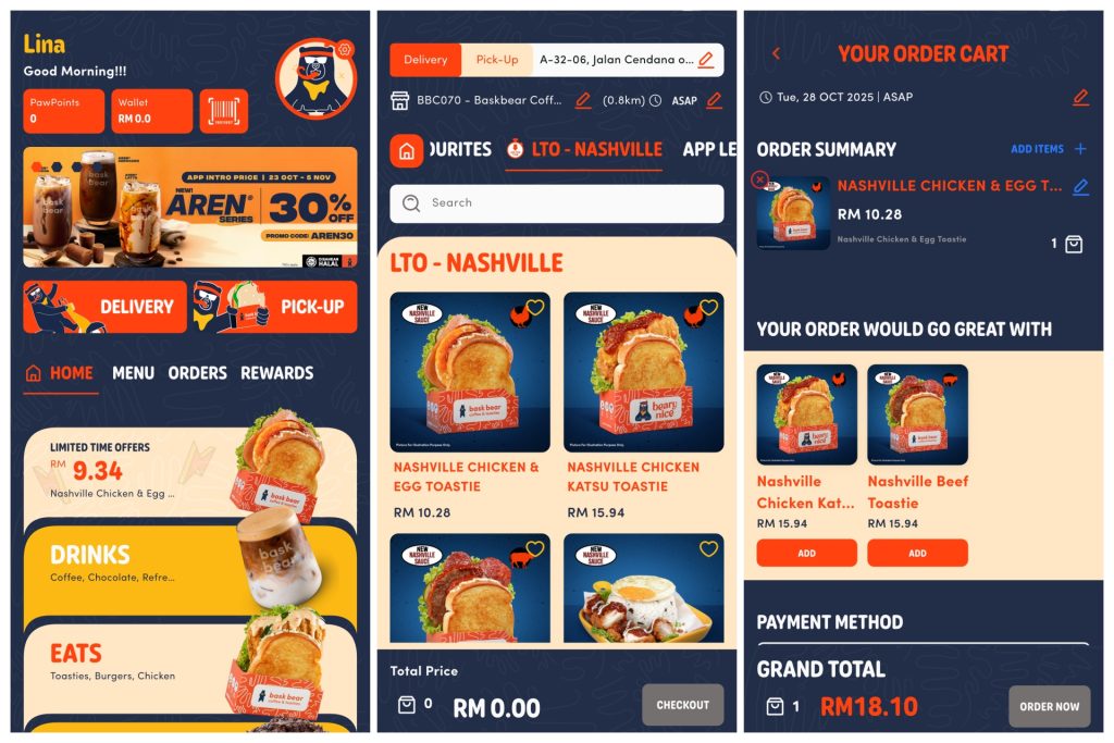 Apa yang menarik pada aplikasi Bask Bear ini, ia kini menawarkan beberapa ciri baharu utama seperti tab pesanan yang lebih jelas – ini menjadikan proses pemilhan menu makanan dan minuman lebih mudah sama ada untuk penghantaran atau pengambilan di cawangan berdekatan.