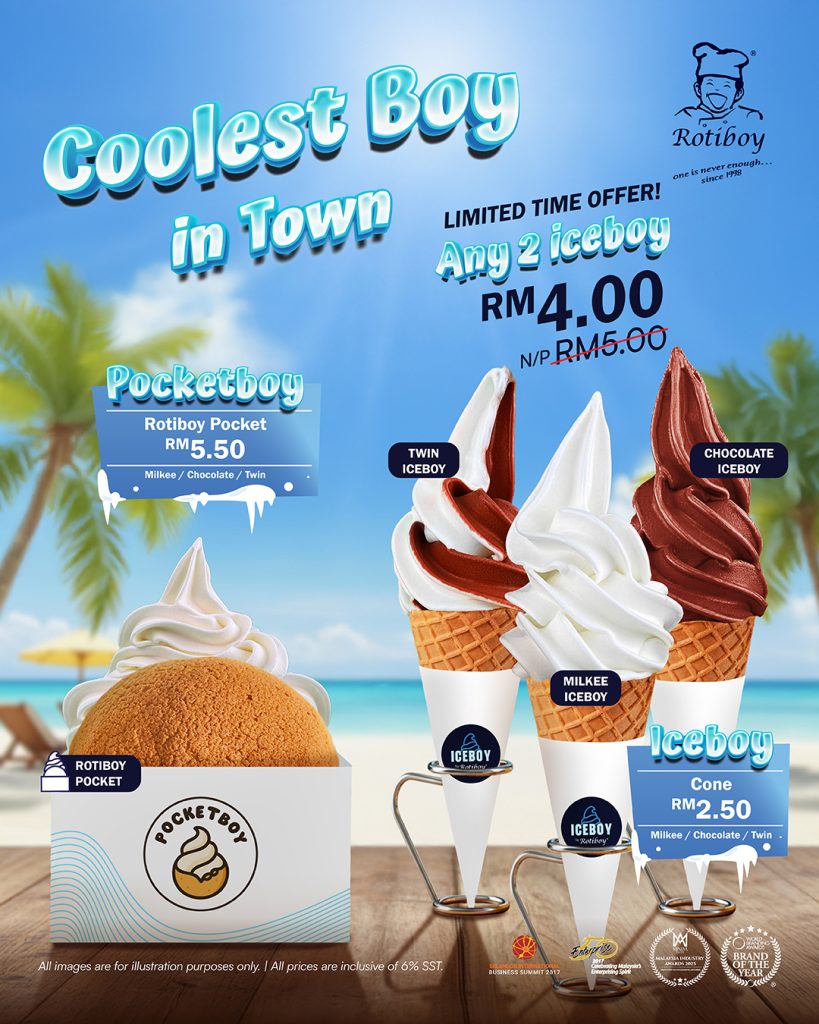 Selain Pocketboy, Rotiboy turut memperkenalkan Iceboy (RM2.50), aiskrim kon lembut yang hadir dalam beberapa pilihan perisa seperti Milkee, Chocolate dan Twin. Untuk masa terhad, pelanggan juga boleh menikmati promosi pembelian mana-mana 2 Iceboy pada harga RM4.00.