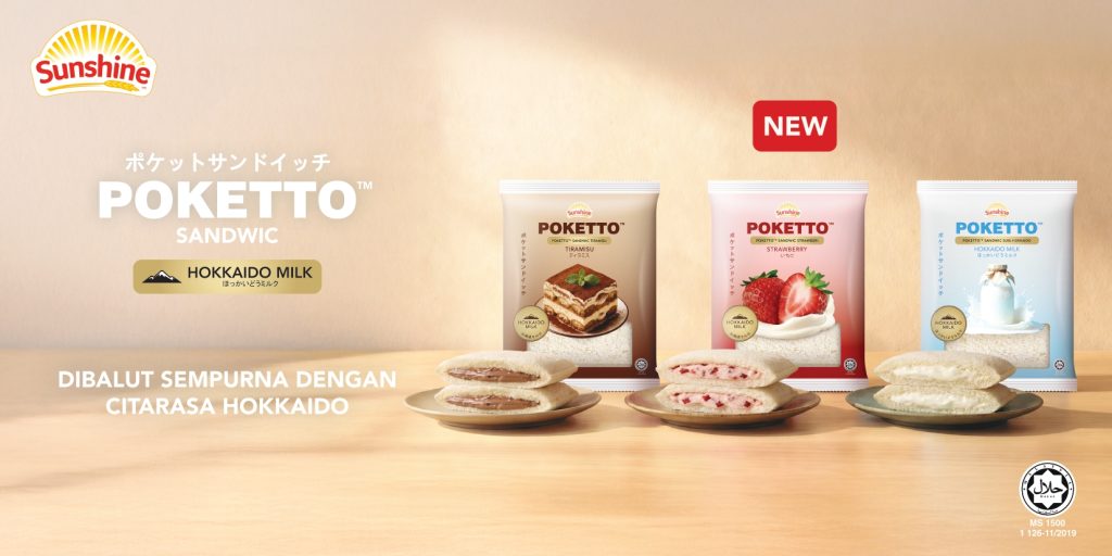 Sunshine Poketto Sandwic hadir dalam tiga pilihan perisa iaitu Strawberi, Tiramisu dan Susu Hokkaido. Keistimewaannya terletak pada inti. Sunshine memilih susu Hokkaido yang terkenal dengan tekstur halus serta rasa berkrim yang lembut. Susu premium ini menjadi asas kepada setiap perisa, menghasilkan sandwic yang gebu dan memuaskan dalam setiap gigitan.
