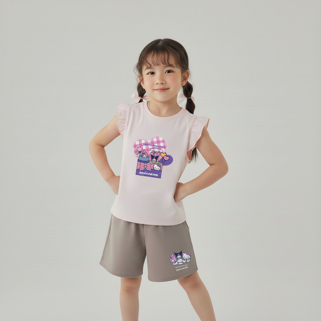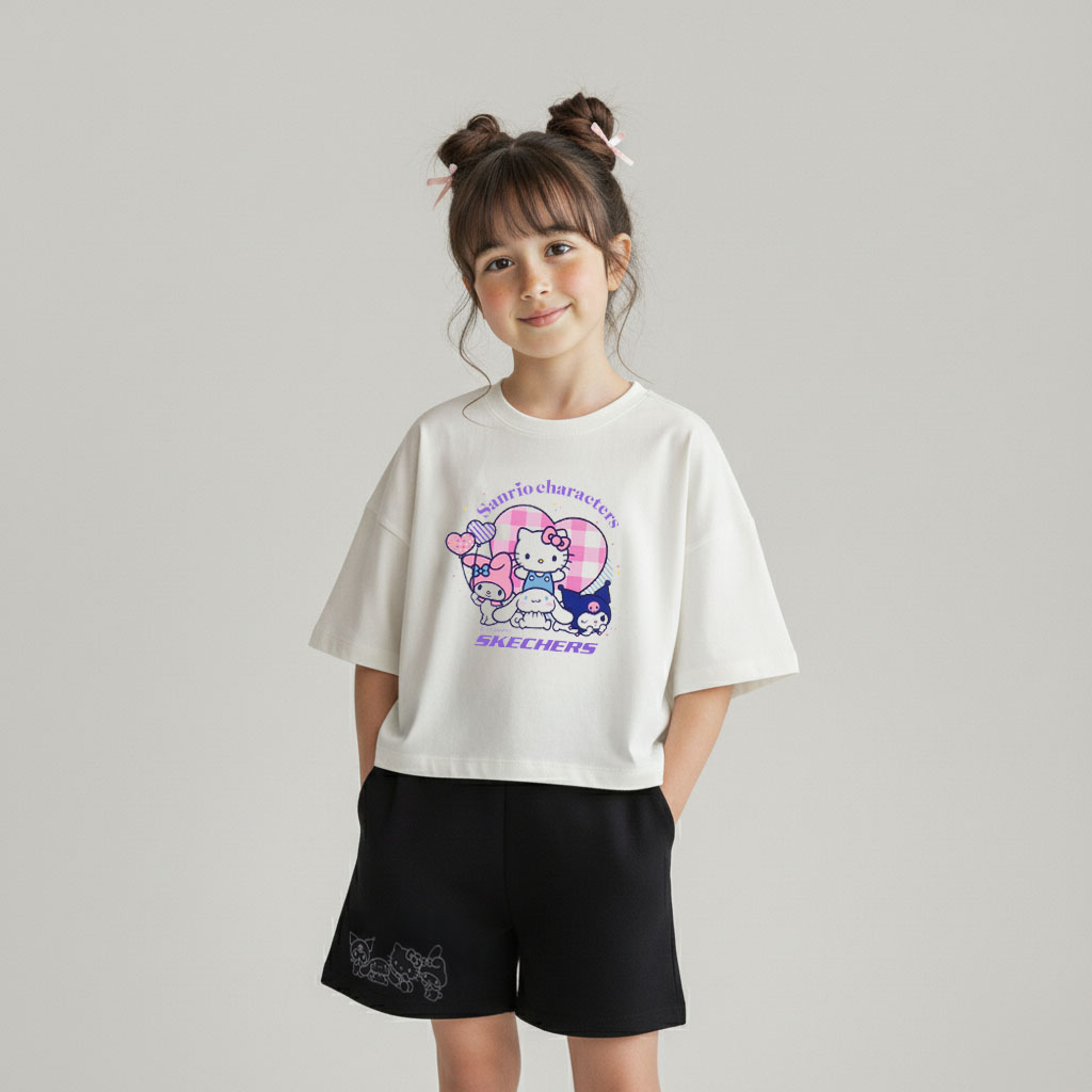 Bukan hanya untuk dewasa, Skechers x Sanrio Collection turut meraikan peminat cilik melalui rangkaian pakaian kanak-kanak perempuan yang penuh warna dan imaginasi.
