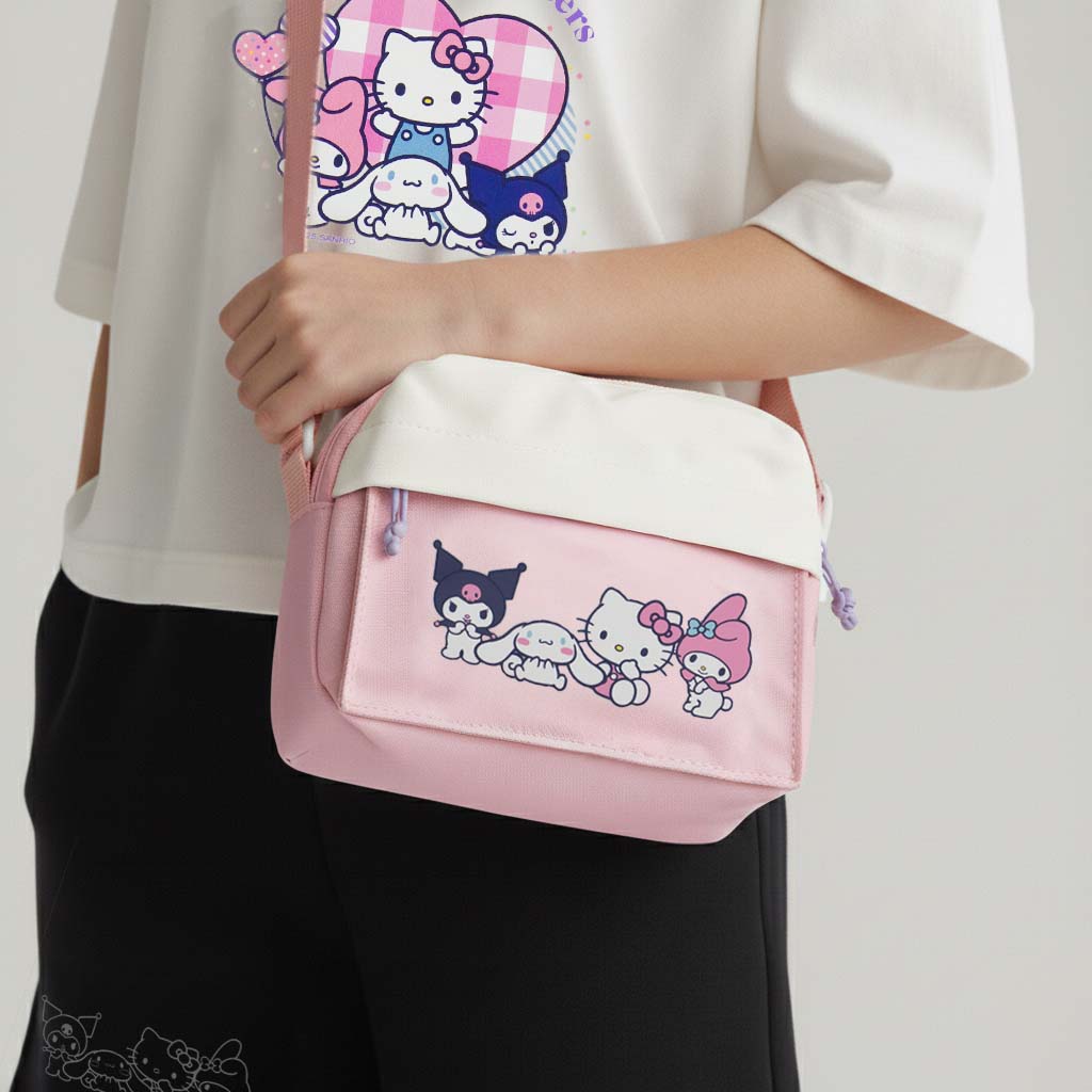 Dengan visual empat watak Sanrio di bahagian hadapan, rekaan ini sesuai untuk aktiviti seharian seperti bermain di taman, berkelah atau sesi bermain imaginatif di rumah.