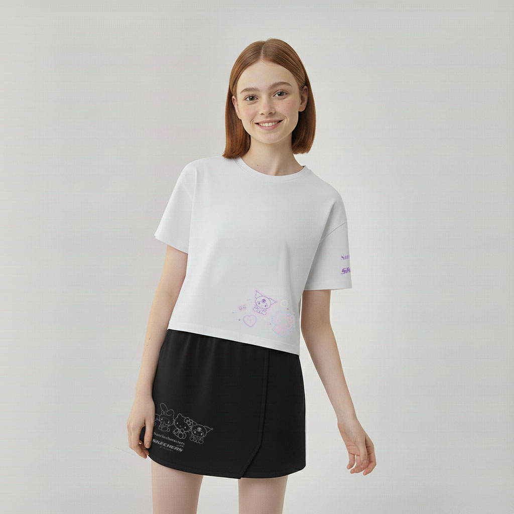 Bagi koleksi wanita, Skechers memperkenalkan Knit Short Sleeve Tees dan Knit Skorts yang diperbuat daripada fabrik knit lembut dan selesa. Terdapat tiga rekaan kemeja-t dan dua gaya skort, setiap satu menampilkan ilustrasi watak Sanrio yang ceria.