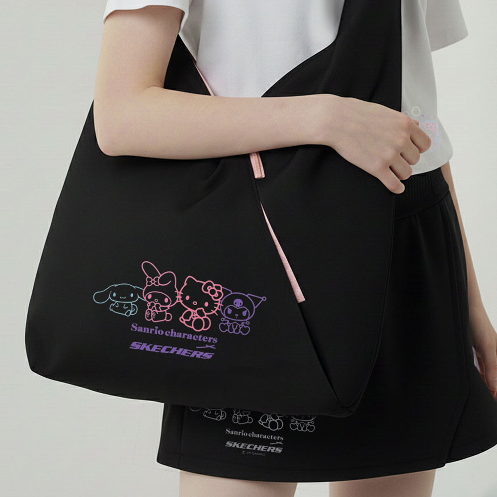 Melengkapkan koleksi ini ialah rangkaian aksesori yang praktikal dan penuh pesona. Women’s Tote Bag yang berharga RM179 dan tersedia dalam warna hitam serta putih, menampilkan keempat-empat watak Sanrio di bahagian hadapan bersama logo Skechers x Sanrio, manakala bahagian belakang dibiarkan ringkas untuk gaya yang lebih fleksibel.