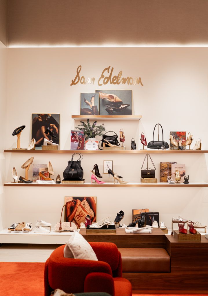 Dengan menampilkan elemen garisan kemas, rona warna yang hangat, serta perincian emas yang halus, ruang ini mencerminkan identiti Sam Edelman yang menggabungkan keanggunan (polish) dengan ciri yang mudah didekati.