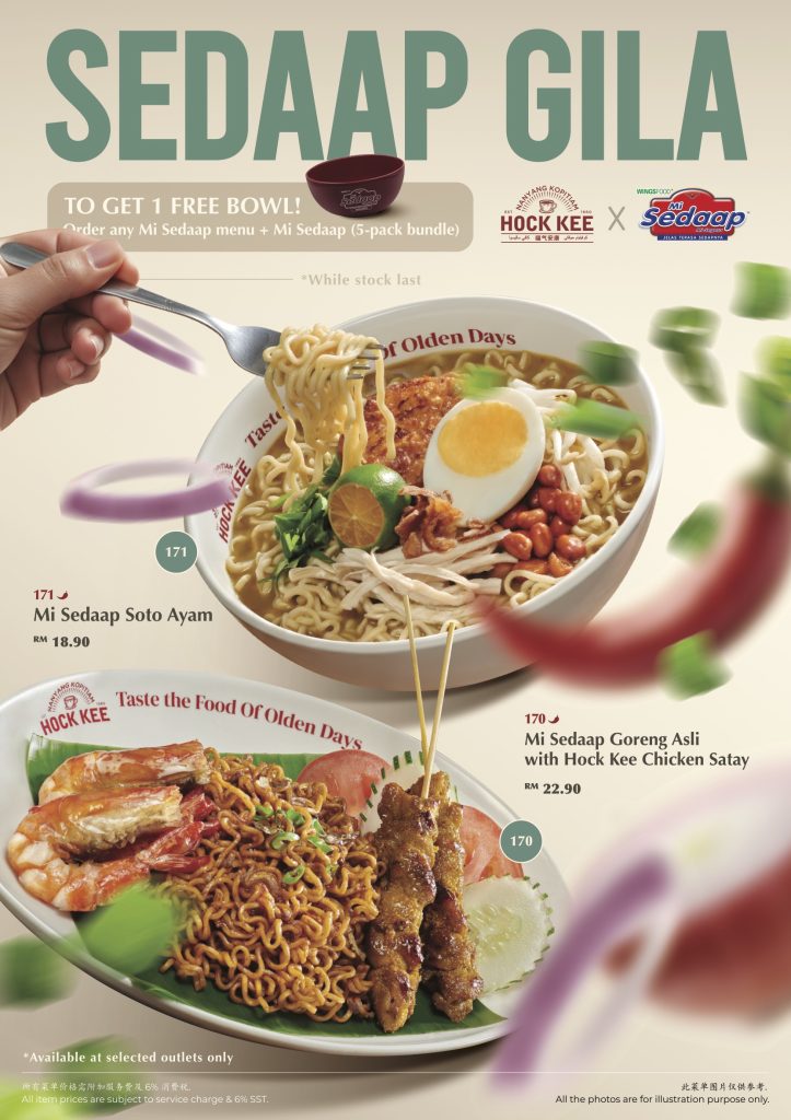 Antara hidangan yang ditawarkan ialah Mi Sedaap Goreng Asli bersama Satay Ayam Hock Kee serta Mi Sedaap Soto Ayam, yang boleh dinikmati di cawangan terpilih Hock Kee Kopitiam sepanjang Ramadan.