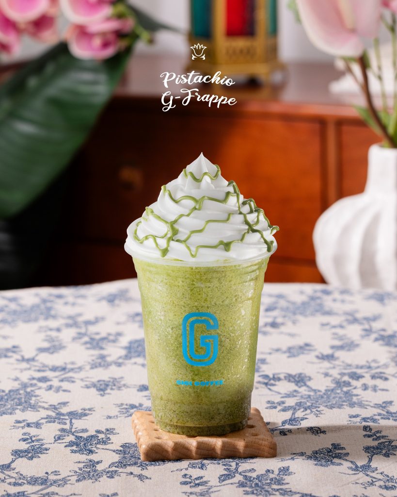 Bagi minuman Pistachio G Frappe, ia merupakan pilihan minuman sejuk bertekstur ais kisar yang digabungkan dengan rasa pistachio yang kaya dan krim yang lembut. Ia sesuai untuk mereka yang gemarkan minuman lebih menyegarkan tetapi masih mengekalkan rasa pencuci mulut yang memuaskan.