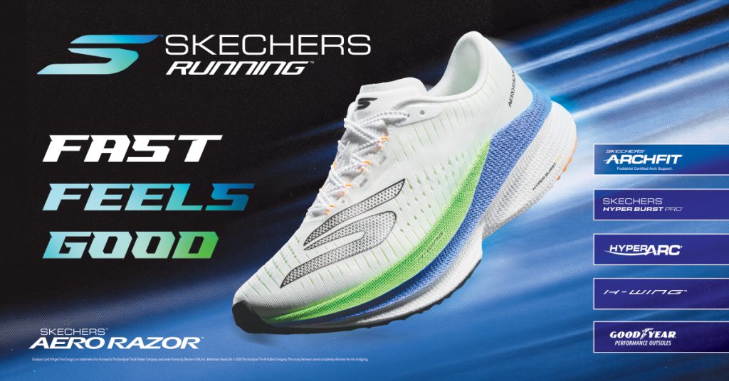 Sementara itu, Skechers AERO Razor disasarkan kepada pelari yang mencari kelajuan dan prestasi maksimum. Model ini menggunakan teknologi kusyen HYPER BURST PRO berasaskan Super Critical foam, yang direka untuk memberikan lantunan tenaga yang tinggi dalam struktur ringan.